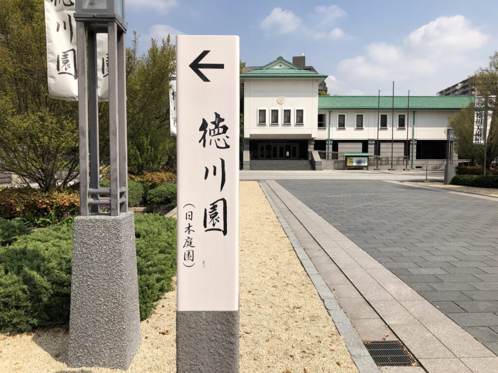 私達は公園の脇を道なりに進み上の画像の緑の建物が見えてきて徳川園の矢印通り進み特に迷う事なく入れました。